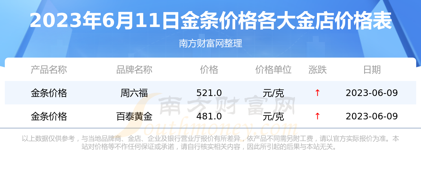 黄金金条最新价格今日概况